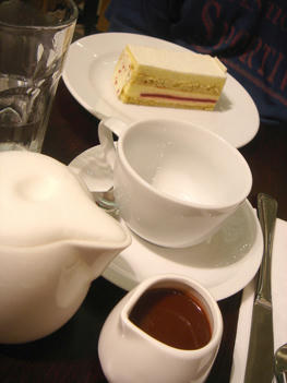 ケーキとホットチョコレート。